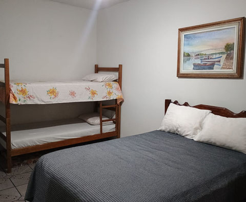2º Quarto possui uma cama de casal, uma bicama e um beliche